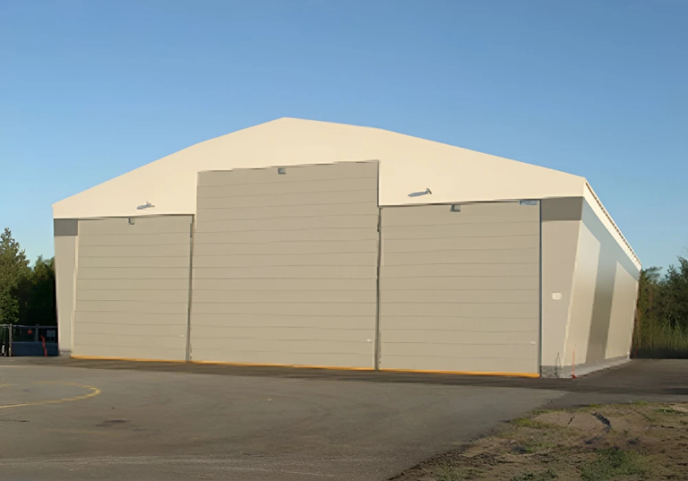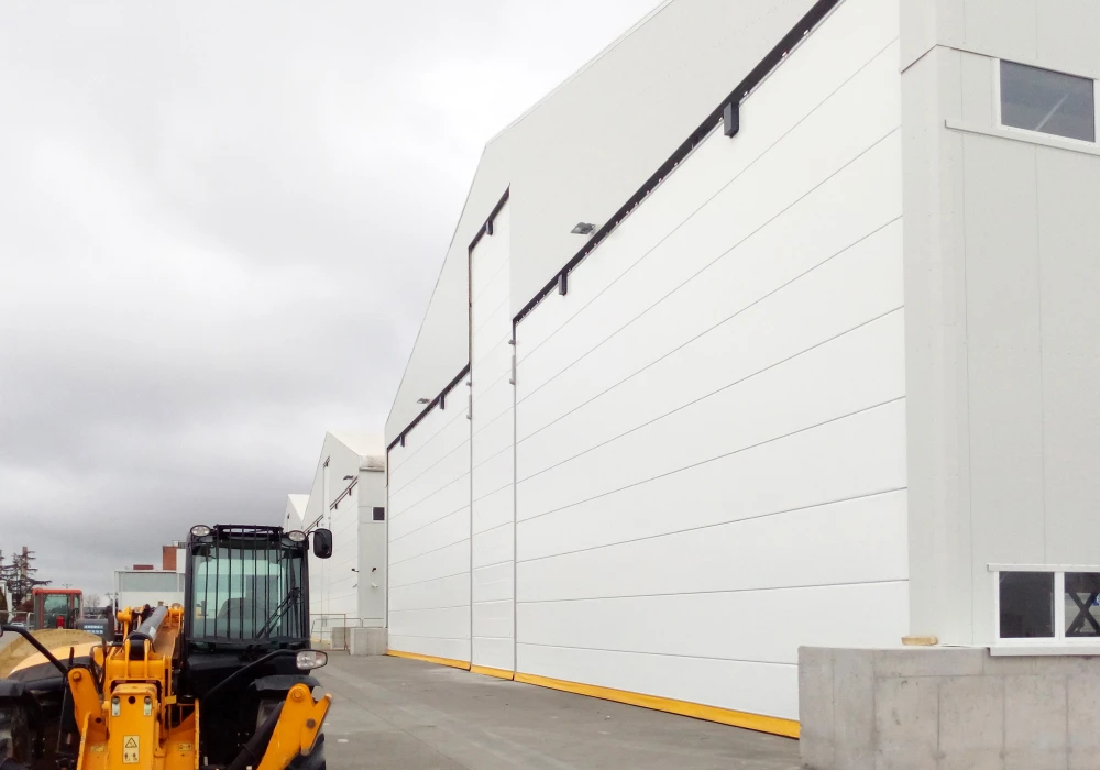 Секционная складная конструкция: использует инновационную технологию подъемных стоек и гидравлическую систему для мощного и плавного складывания вверх в просторных ангарах.